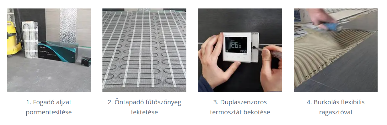 Fűtőszőnyegek lerakása járólap és vinyl padló alá